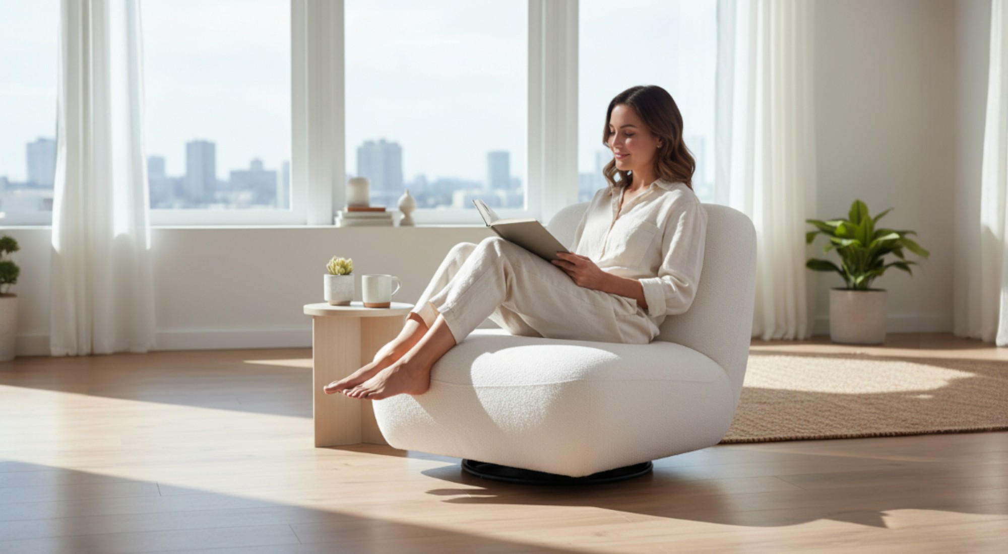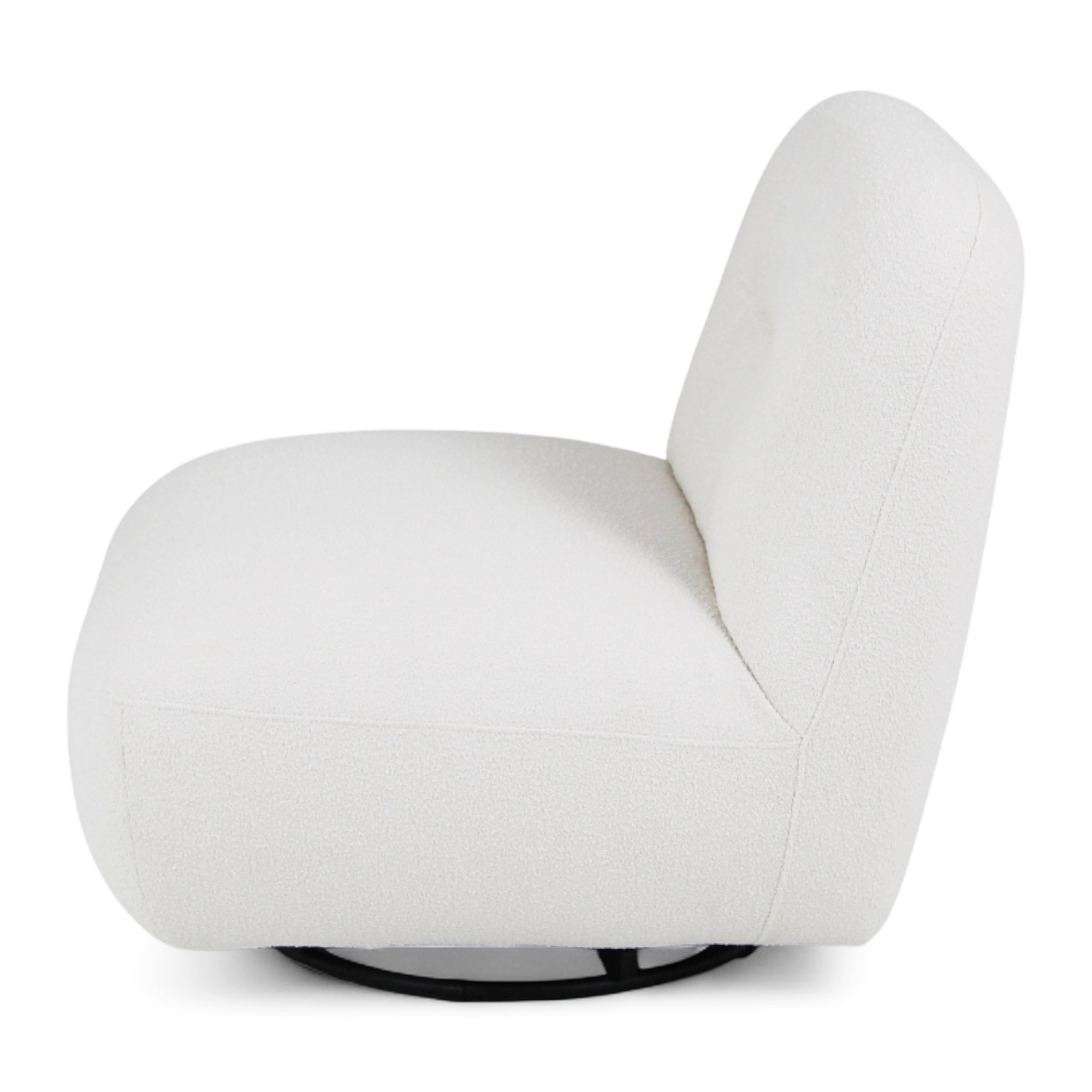 Le fauteuil Loco est une proposition moderne aux formes exceptionnellement douces et accueillantes qui garantit une détente totale dès la première assise. Son assise large et profonde vous invite à vous reposer et ses lignes légèrement arrondies permettent au meuble de s’intégrer parfaitement dans des aménagements minimalistes ou plus élégants. C’est un modèle qui peut devenir le point central d’un intérieur – simple, mais extrêmement impressionnant. Le fauteuil est équipé d’un mécanisme de pivotement qui lui permet de pivoter en douceur sur 360°, ce qui augmente le confort d’utilisation dans les salons, les bureaux à domicile et les espaces commerciaux. Le revêtement en bouclette souple et flexible confère une sensation de confort à l’intérieur, tandis que sa texture subtile accentue le design du meuble et lui confère une touche de mode et de modernité.